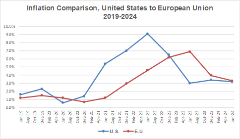 Tariffs are a very dangerous economic tool. As discussed above, they may sometimes be warranted to protect against another country’s dumping goods on the U.S. market to gain market share. Many Americans believe – because Donald Trump constantly tells them – that foreign governments pay tariffs to the American government when imposed. That is not even a little bit true. When the American government imposes tariffs, they raise the price of imported goods (by the amount of the tariff) which are bought by American consumers – the American consumer pays the tariff, every time, all the time. It is the Trump tariffs from his first administration, which were continued by Biden, that contribute mightily to the fact that the U.S. will probably be hard-pressed to reach its 2.0% inflation target.