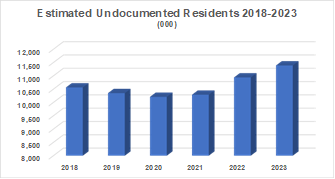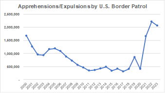 Note that the number of undocumented residents in the U.S. can change depending on who is doing the counting and what their motives are; it is a fungible number. The number has ranged between 10.0 and 12.0 million people, though the numbers have increased during the Biden Administration. The statistic that is far worse for the Biden Administration is border encounters by U.S. authorities during the past three years (after a ten-year period of relative calm). The encounters statistic suggests that there are far more people who get through since the government can only count the migrants who were caught. The statistics support the contention that the southern border is in chaos.